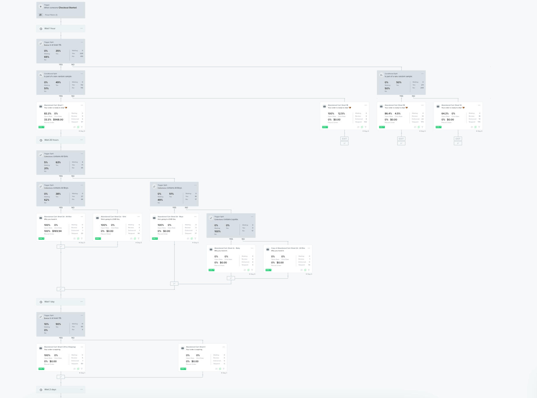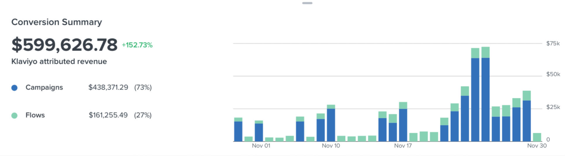 Upgraded site abandon, browse abandon, cart abandon, and checkout abandon flows alongside aggressive (but not pushy) campaigns resulted in 2.5x revenue compared to the previous month.